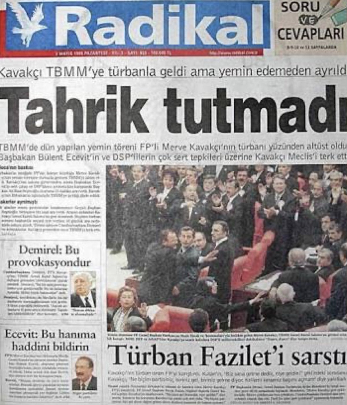 Zorbaca yöntemlerle Başbakanlıktan indirilen, genel başkanı olduğu Refah Partisi hukuksuzca kapatılan merhum Necmettin Erbakan’ın kurdurduğu, merhum Recai Kutan’ın genel başkanı olduğu Fazilet Partisi listelerinden milletvekili seçilen Merve Kavakçı’nın başörtülü bir hanım olması ise dönemin laikçi odaklarının büyük tepkisini çekmişti. Başta Bülent Ecevit’in DSP’si olmak üzere; siyasi çevreler, askeriye ve yargı çevreleri, kartel medyası, STK’lar, kanaat önderleri ile muhtelif ünlüler ortamı germek için ellerinden geleni yapmaktaydılar.