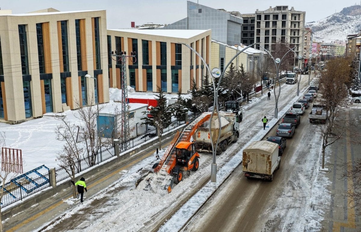 Büyükşehir ve ilçe belediyeleri kent merkezindeki cadde ve sokaklarda kar temizliği yaptı.