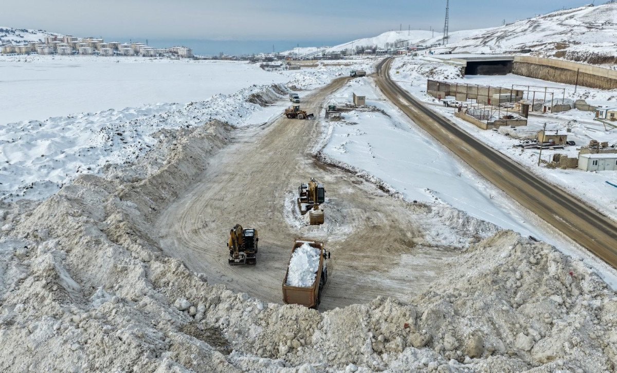 Kar küreme aracının da kullanıldığı kar temizleme çalışmalarında toplanan kar kütleleri, kamyonlarla Sıhke Gölü’ne taşındı.