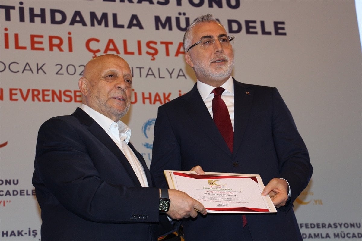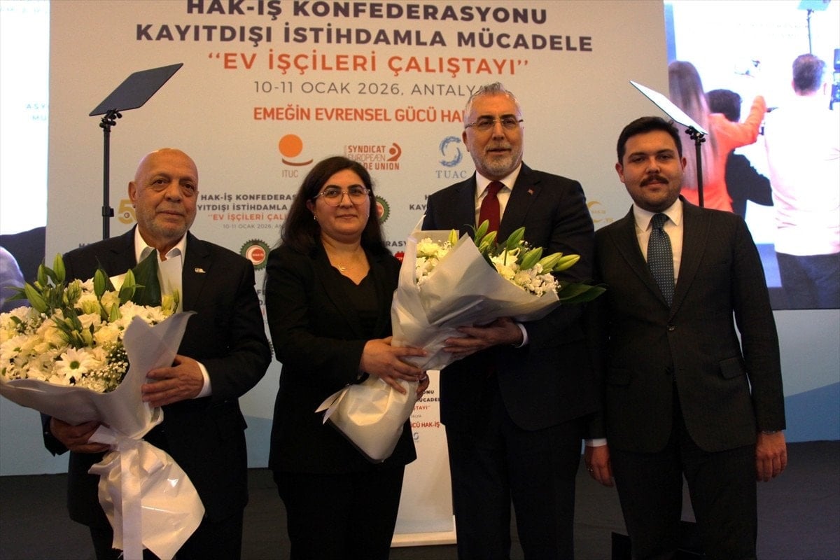Çalışma ve Sosyal Güvenlik Bakanı Vedat Işıkhan, HAK-İŞ tarafından Antalya’da kent merkezindeki bir otelde düzenlenen Kayıt Dışı İstihdamla Mücadele Ev İşçileri Çalıştayı’na katıldı.