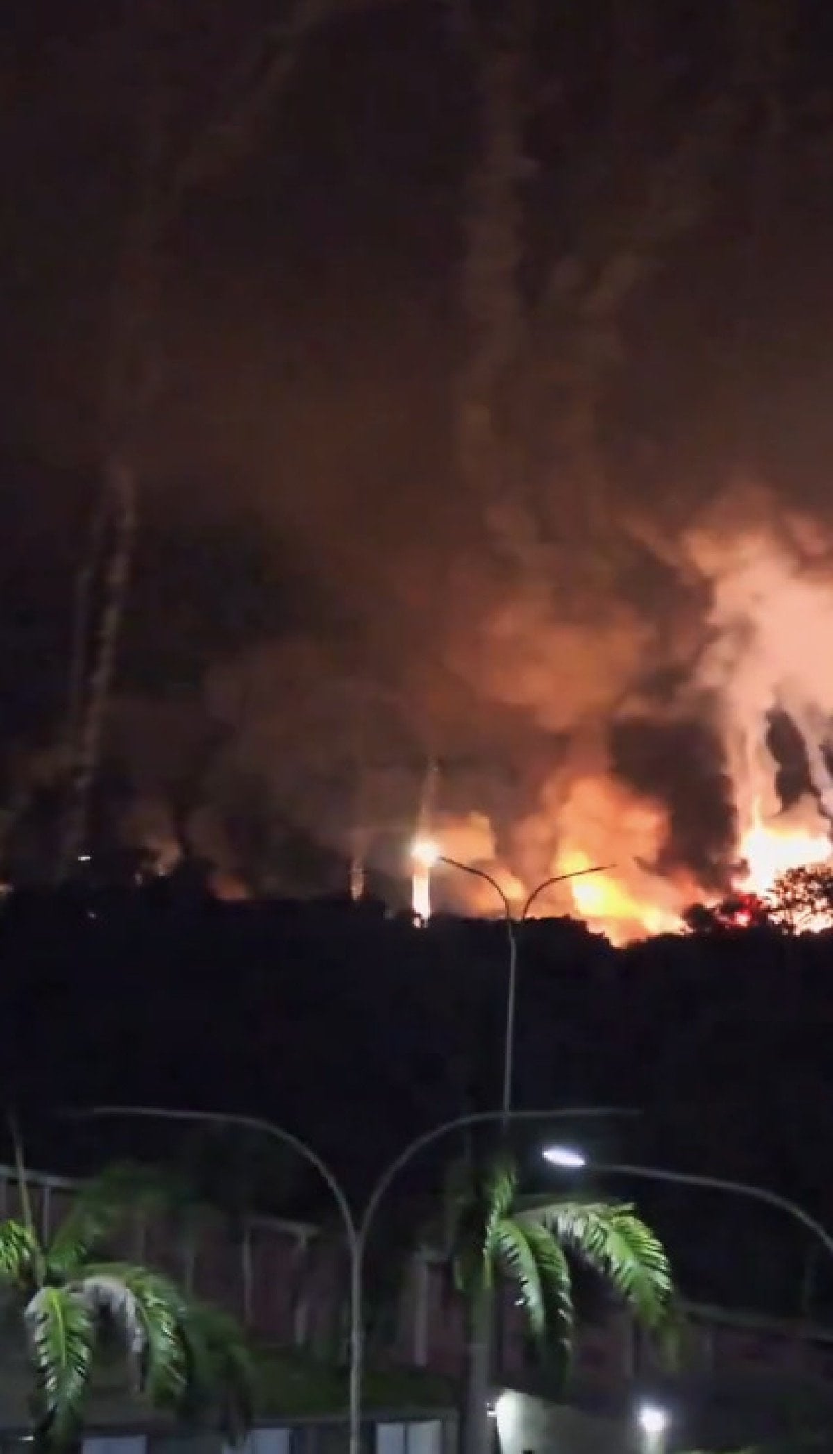 Kentin üstünde dumanlar yükselirken, şehrin güney kesiminde, büyük bir askeri üssün yakınında elektrik kesintisi yaşandı.