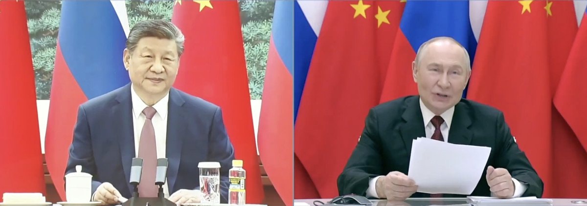 Rusya Devlet Başkanı Vladimir Putin ile Çin Devlet Başkanı Şi Cinping, video konferans ile bir araya geldi.