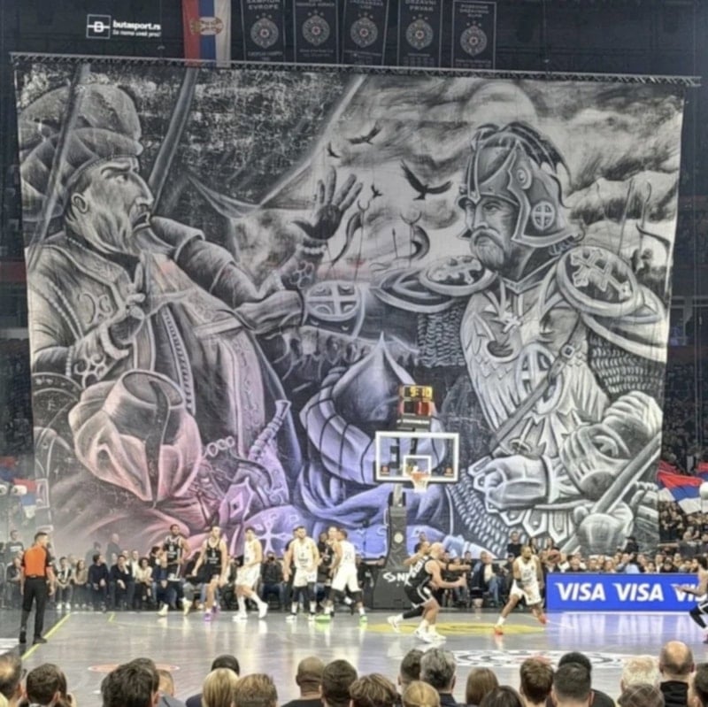 Fenerbahçe’nin Partizan deplasmanında oynadığı maçta Sırp taraftarlar, 1389’daki I. Kosova Savaşı’nda Osmanlı Padişahı I. Murad’ı hançerleyerek şehit eden Milos Obiliç’i tasvir eden bir pankart açmıştı.