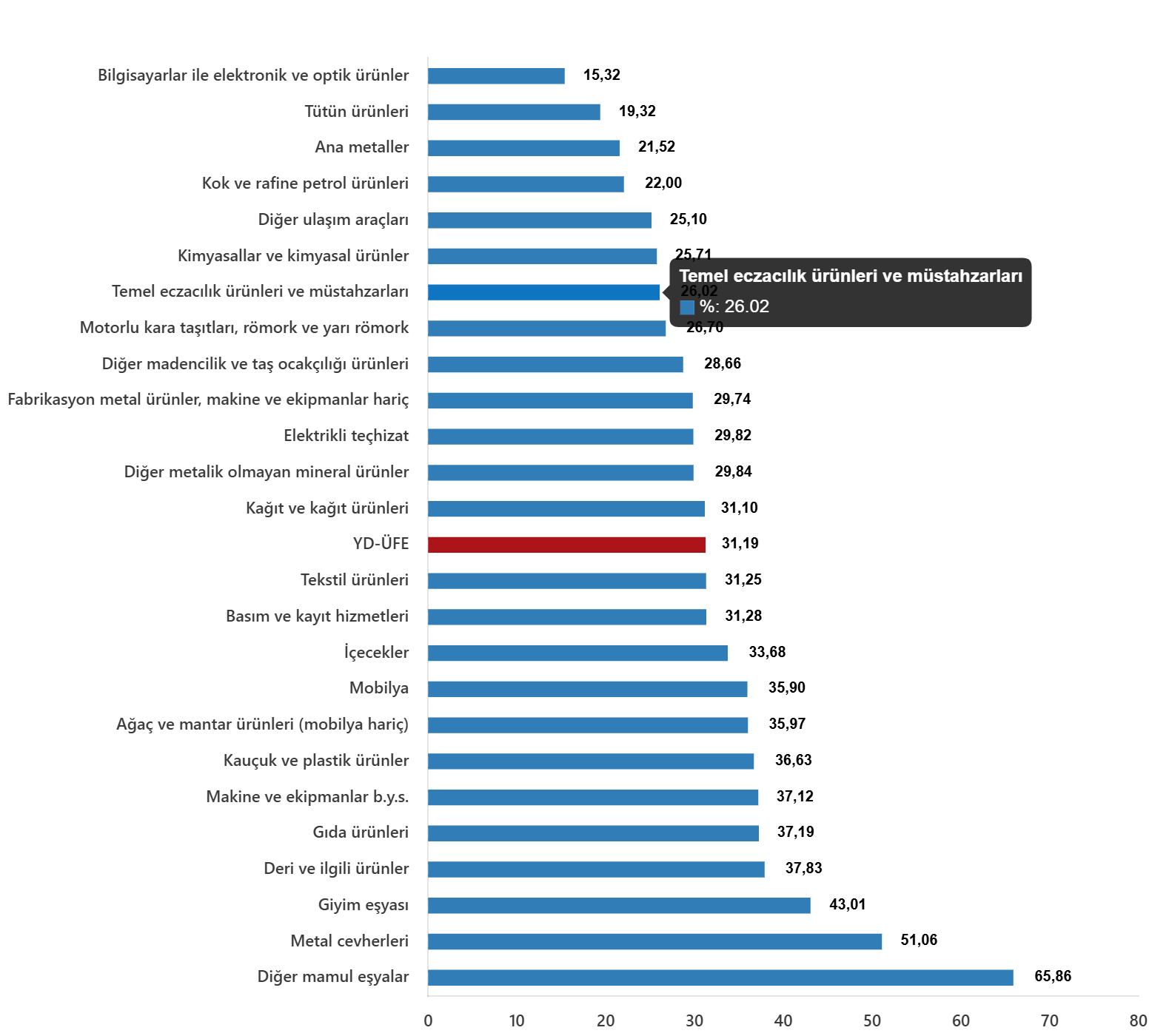 YD-ÜFE imalat ürünlerinde yıllık %31,02 arttı