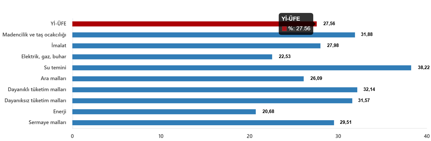 Yurt İçi Üretici Fiyat Endeksi (Yİ-ÜFE) yıllık %27,56 arttı, aylık %2,43 arttı